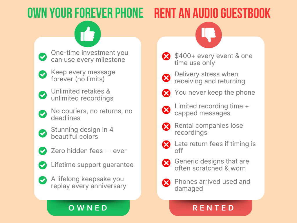 The Forever Phone™ captures those moments exactly as they happened, in their real voices, forever.